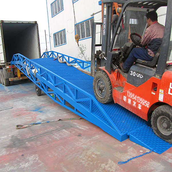 移動登車橋是實現(xiàn)貨物快速裝卸的專用輔助設備,它的高度調(diào)節(jié)功能使貨車與庫房的貨臺之間架起一座橋梁,叉車等搬運車輛通過它能直接駛入貨車內(nèi)部進行貨物的批量裝卸,僅需單人作業(yè),即可實現(xiàn)貨物的快速裝卸。移動液壓登車橋使企業(yè)減少大量勞力,提高工作效率,獲取更大經(jīng)濟效益。臺面均設計為網(wǎng)格狀鋼板,這種結構能保證具有很好的強度,又具有防滑功能,還能方便地清掃工作臺面,使它能經(jīng)常地保持清潔、美觀。移動液壓登車橋無須外接電源,通過手搖泵做動力能輕松地在其整個調(diào)整范圍內(nèi)按50mm的倍數(shù)進行高度的調(diào)整。可以充分適應各種不同高度的貨車.