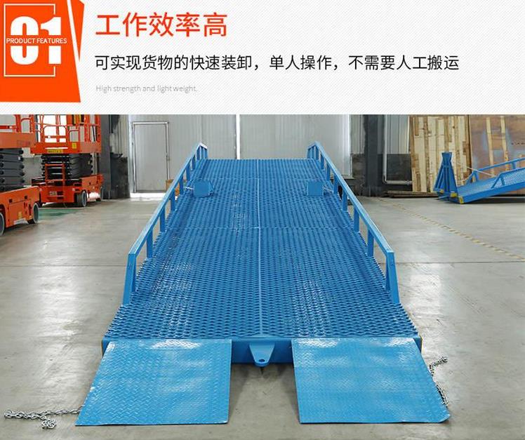 濱州登車橋-移動(dòng)式登車橋-固定式登車橋-安徽液壓登車橋主要技術(shù)指標(biāo):大動(dòng)負(fù)載:6T大靜負(fù)載:6T大寬度:2M大長(zhǎng)度:4M電動(dòng)液壓式法國(guó)進(jìn)口組裝登車橋用途登車橋移動(dòng)登車橋移動(dòng)式液壓登車橋廣泛用于無(wú)裝卸設(shè)備的貨臺(tái)及流動(dòng)裝卸場(chǎng)所,是與叉車配合使用的貨物輔助設(shè)備。